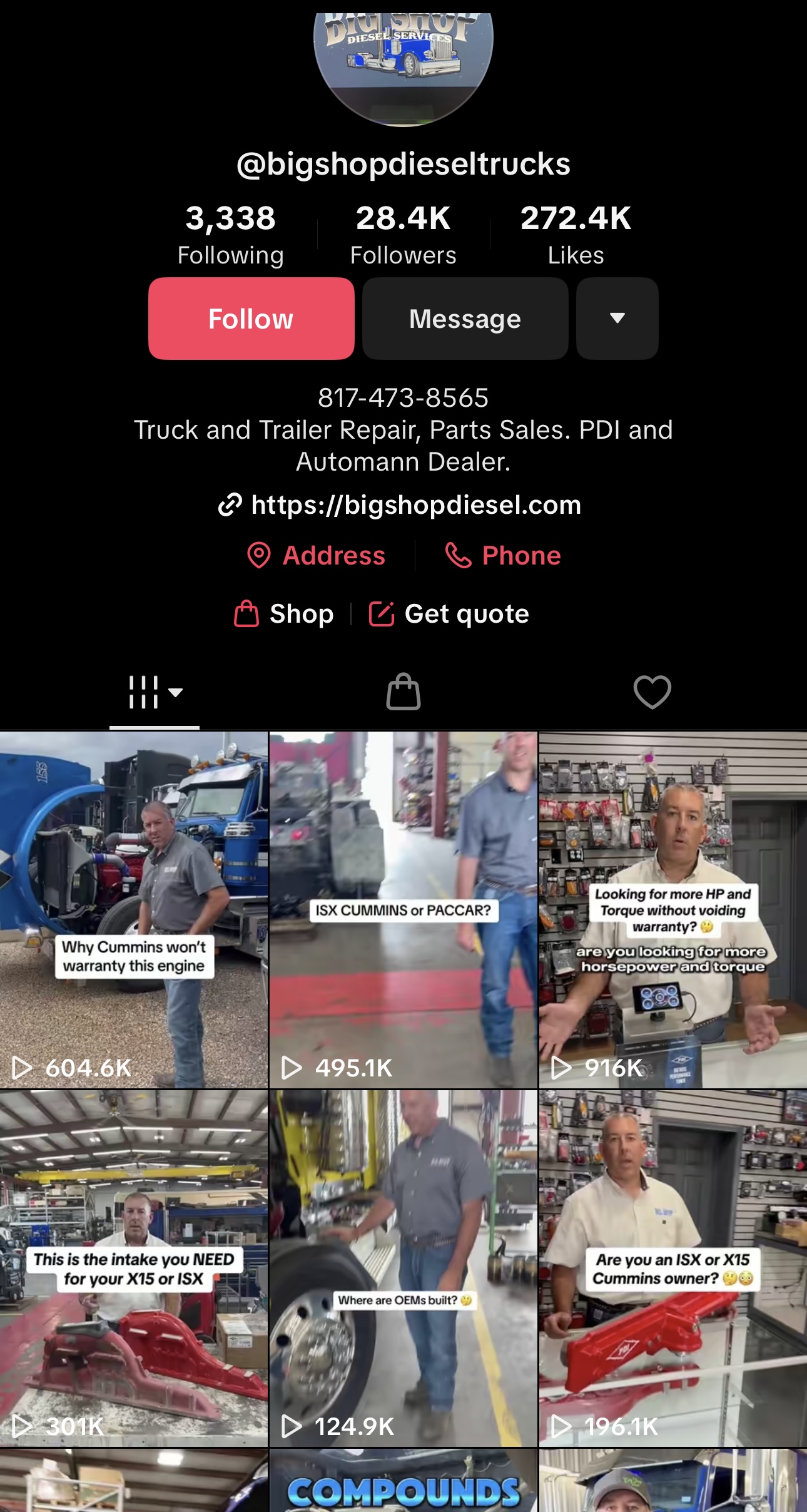 Shops like SOS Truck Repair — 30+ engine jobs in just a few months.