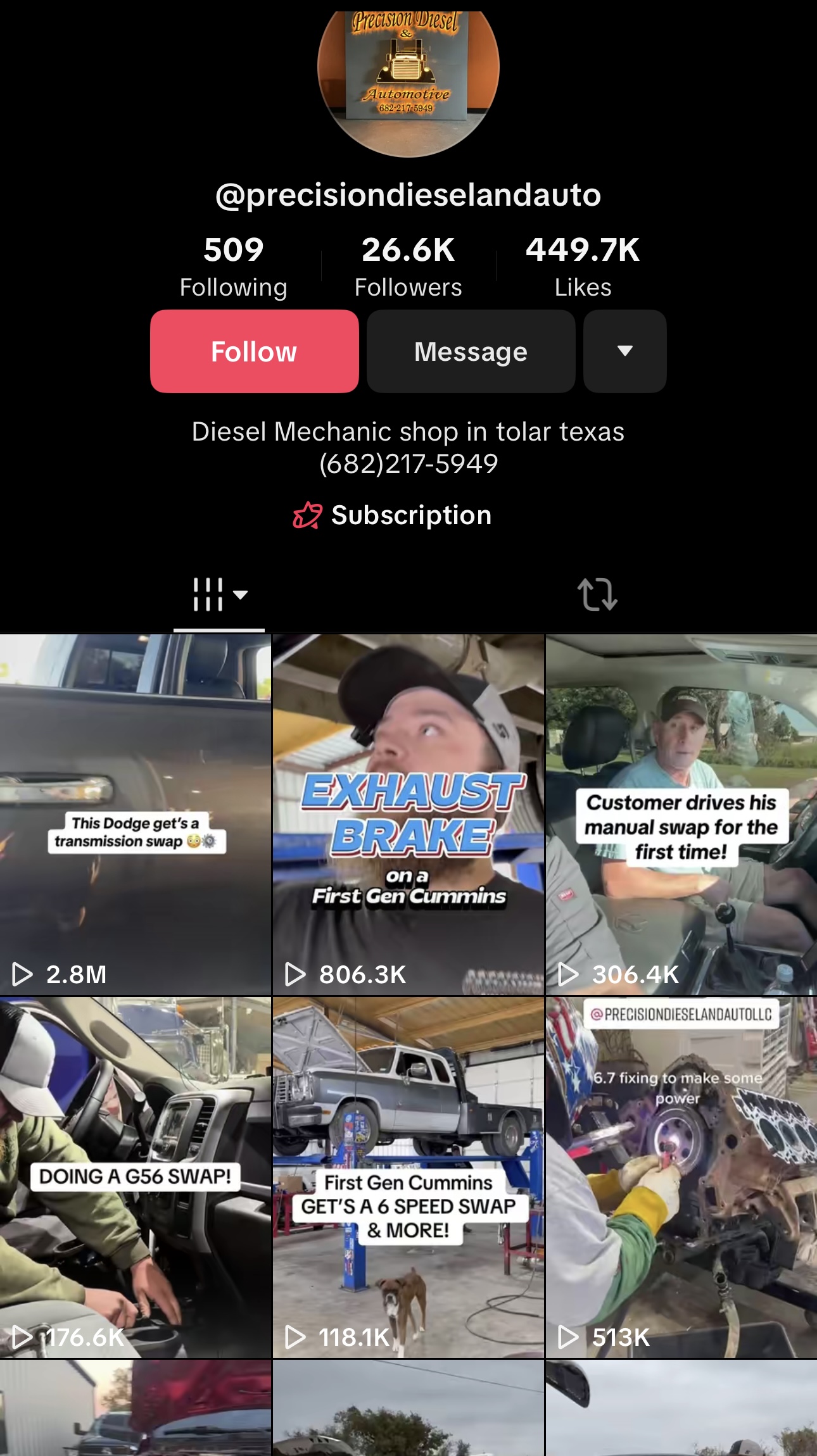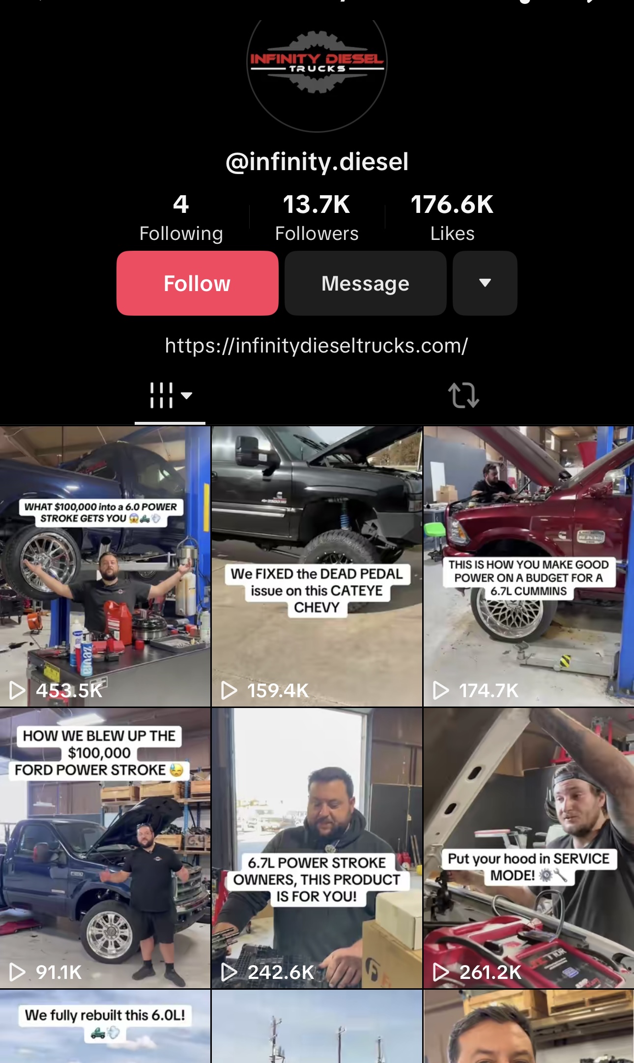 Infinity Diesel — booked out with \$20k jobs and hiring new techs to keep up.